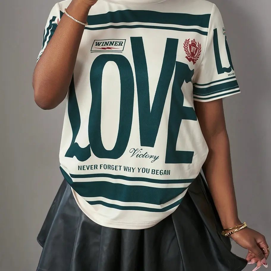 Featuring a round neckline and short, regular sleeves, this unlined tee offers a regular fit that provides both comfort and style. Its unique letter and striped pattern in a chic apricot hue makes it perfect for Halloween festivities or any casual occasion. With medium stretch fabric, it promises ease of movement without compromising on elegance.