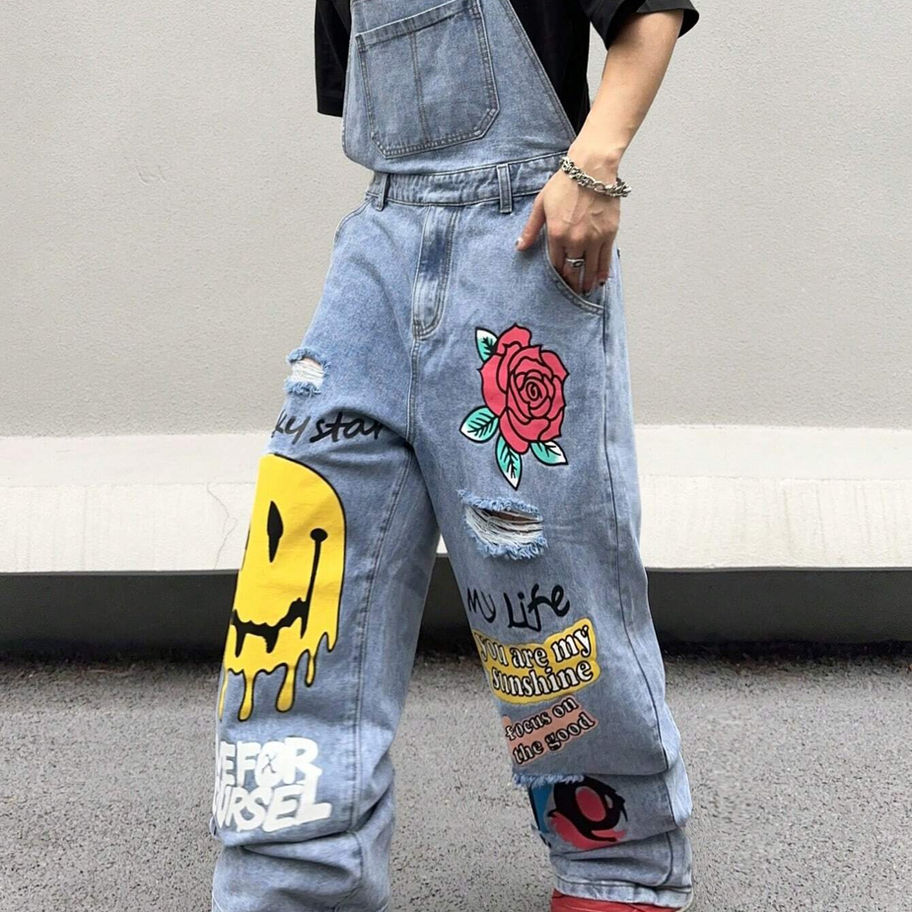Ideal for conventional styling, these wide-leg overalls feature a whimsical blend of cartoon, colorblock, and letter patterns in a vibrant blue hue. The sleeveless, long-length design includes practical details like straps, button closures, pockets, and trendy rips. Crafted from a durable, non-stretch denim blend (86% Cotton, 8% Viscose, 6% Polyester), these loose-fitting overalls ensure comfort and ease for your everyday adventures. Machine washable for effortless care, this statement piece flawlessly combines timeless sophistication with modern trends.