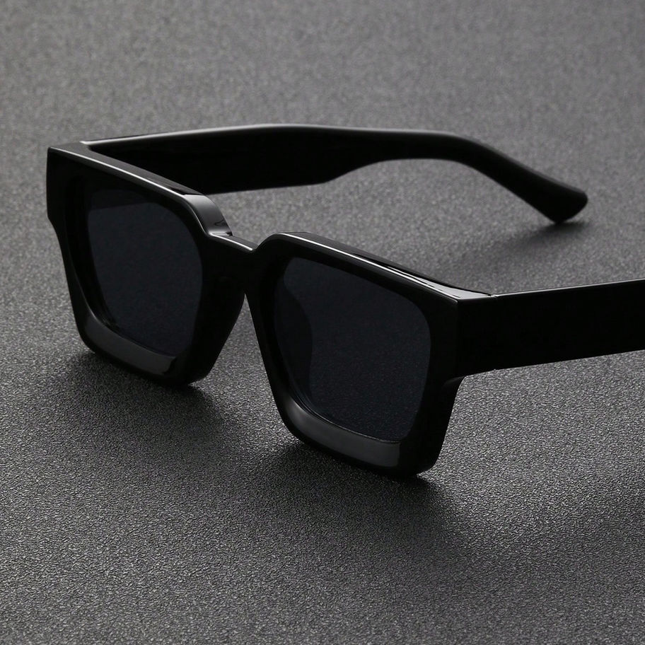 A sleek and modern pair of square sunglasses featuring grey lenses and a durable PC frame, with full-rim design for a clean, contemporary look.