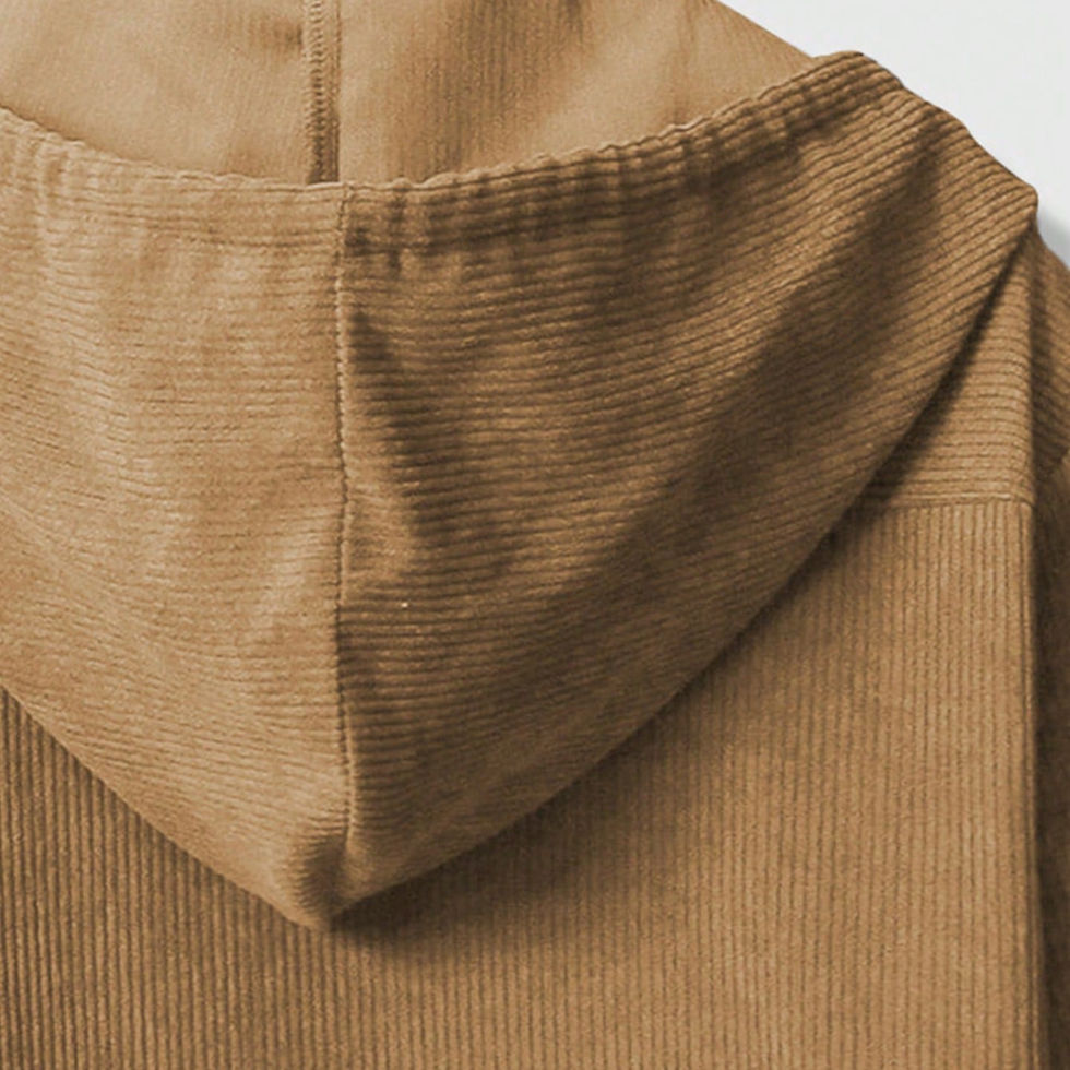 Discover the unbeatable combination of timeless sophistication and modern flair with our brown Corduroy Hoodie. Crafted from premium 100% polyester corduroy, this shirt-style hoodie features a single-breasted placket, regular sleeves, and a classic hooded neckline, making it ideal for daily, conventional scenes. The regular fit and length ensure a comfortable, flattering look, while the button, drawstring, and pocket details add functional style. With its plain pattern and regular hem shape, this hoodie seamlessly integrates into your wardrobe, offering versatility and durability. Elevate your everyday style with this essential piece, designed for both comfort and elegance.