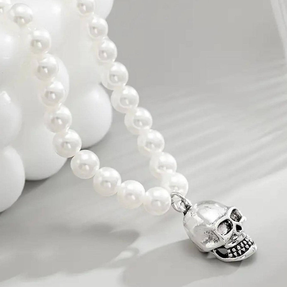 Faux Pearl Skull Pendant Necklace