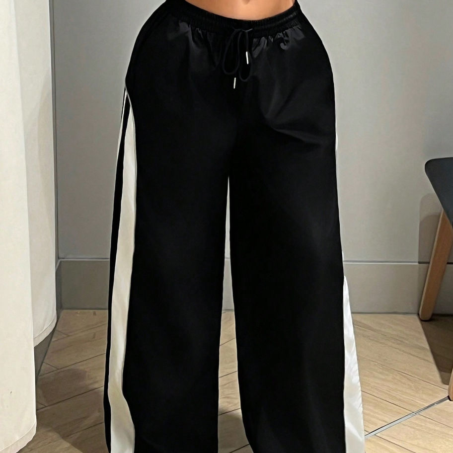 Designed with a casual yet sophisticated vibe, these black, colorblock, plain, or striped wide-leg trousers flaunt an ultra-low waist and extra-long length, perfect for a loose, laid-back look. Made from 100% polyester with a non-stretch fabric, they ensure durability without compromising on comfort. Ideal for spring, these pants are easy to care for—simply machine wash or opt for a professional dry clean. Urban Runway curates pieces that blend timeless elegance with contemporary trends, and these pants are no exception.