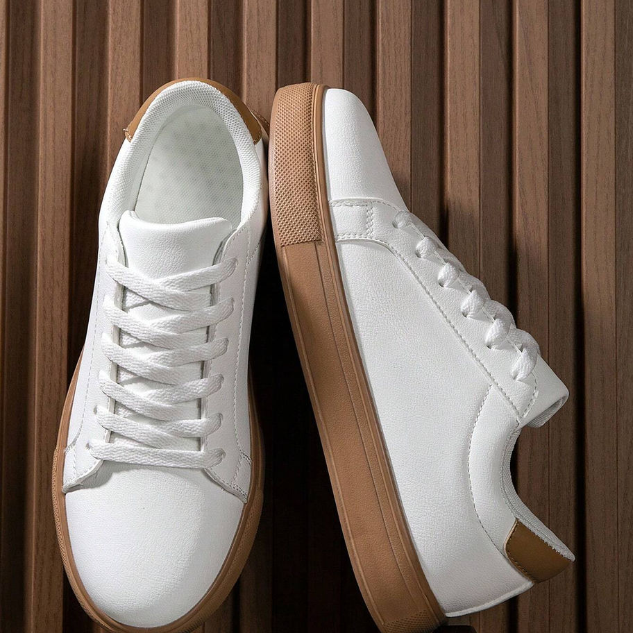 Perfect for any occasion, be it a party, the office, gym & fitness, or outdoor adventures, these versatile slip-ons feature a sleek colorblock and plain pattern design in an elegant brown. The flat heels and round toe provide all-day comfort, while the lace-up closure with rope details adds a fashionable touch. Crafted with premium PU Leather for the upper material, mesh insole, and fabric lining, these sneakers deliver durability and breathability. Please note, they fit one size smaller, ensuring a snug and secure fit.