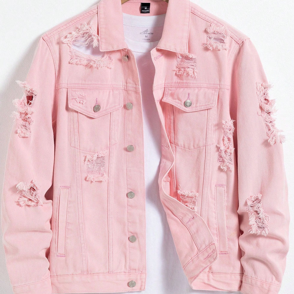 Pink Distressed Denim Jacket