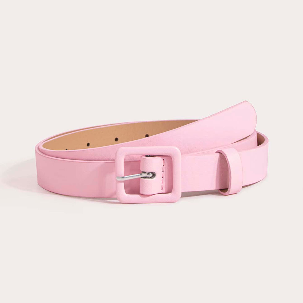 Casual plain pink belt made from 100% polyurethane with a sleek, minimalist buckle design, offering a non-stretch structure for a polished finish.