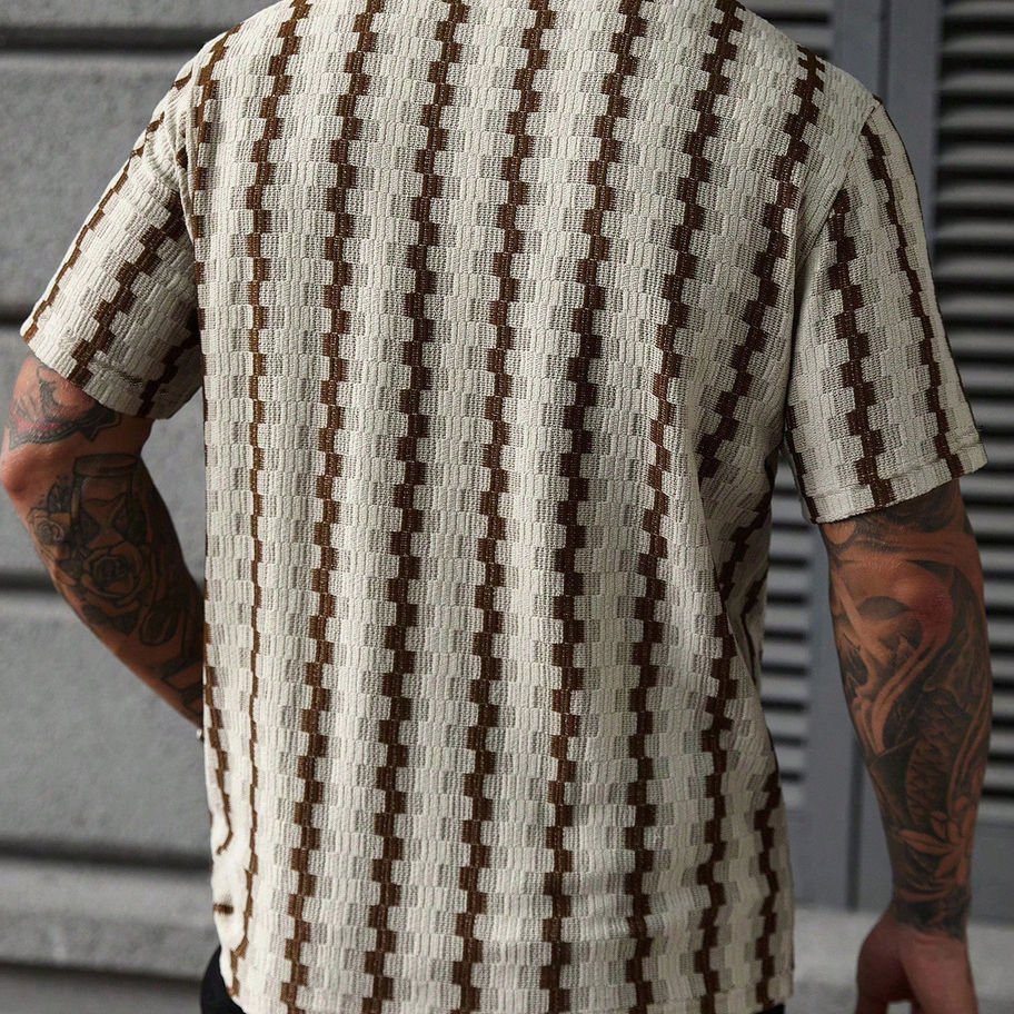 Featuring regular short sleeves and a regular hem shape, it provides comfortable movement while maintaining a polished look. Easy to care for, this shirt is machine washable or can be professionally dry cleaned to keep it looking fresh. Perfect for those who value contemporary trends combined with customer-focused design.