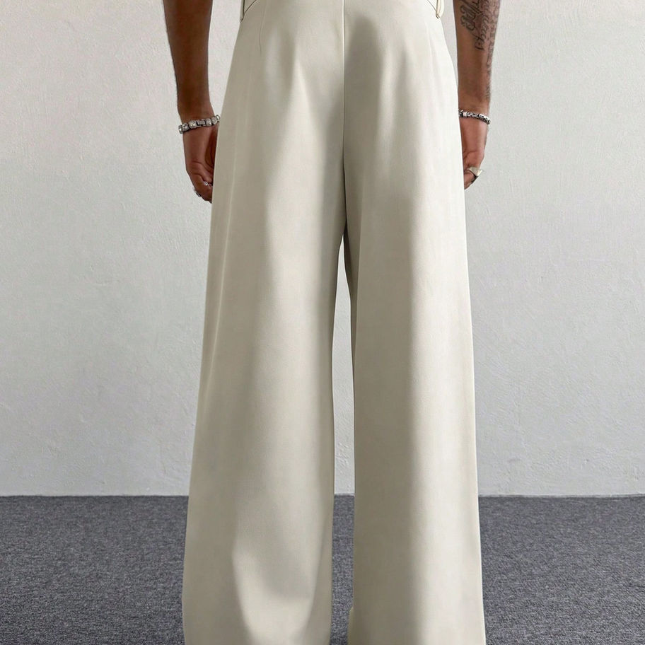 Functional details include a zipper fly closure, button accents, convenient pockets, and secure zippers, blending style with practicality. Designed for easy care, these long trousers can be machine washed or professionally cleaned to maintain their quality.