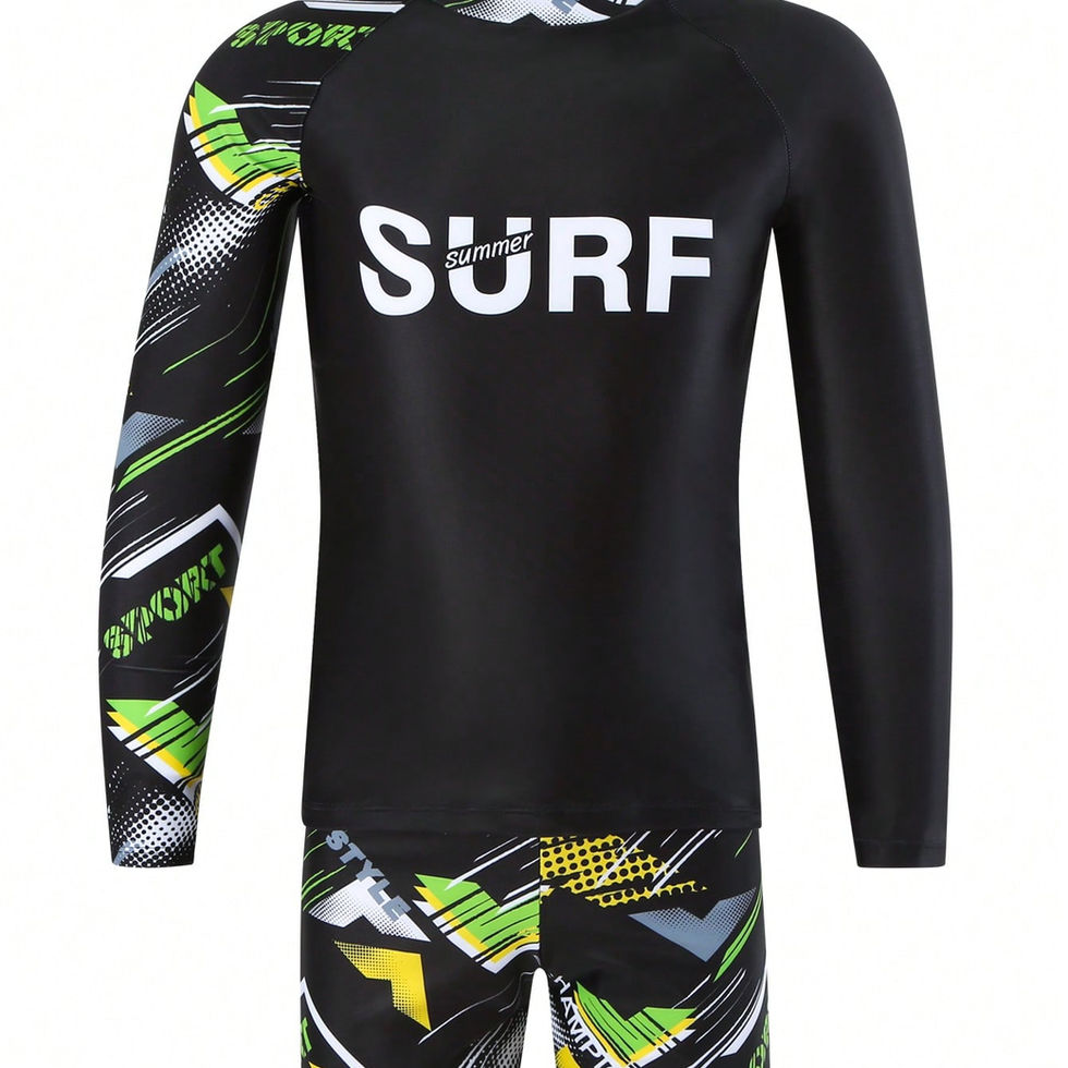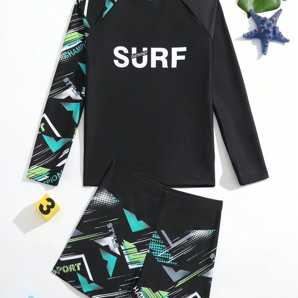 This stylish black tankini features a high neck and boho letter design. Made with high stretch fabric for a comfortable fit, it’s perfect for the beach or pool.