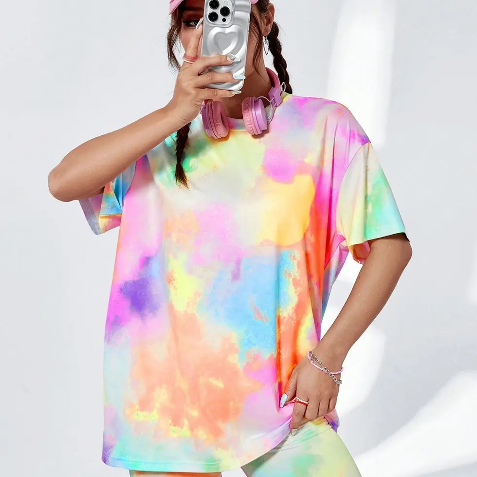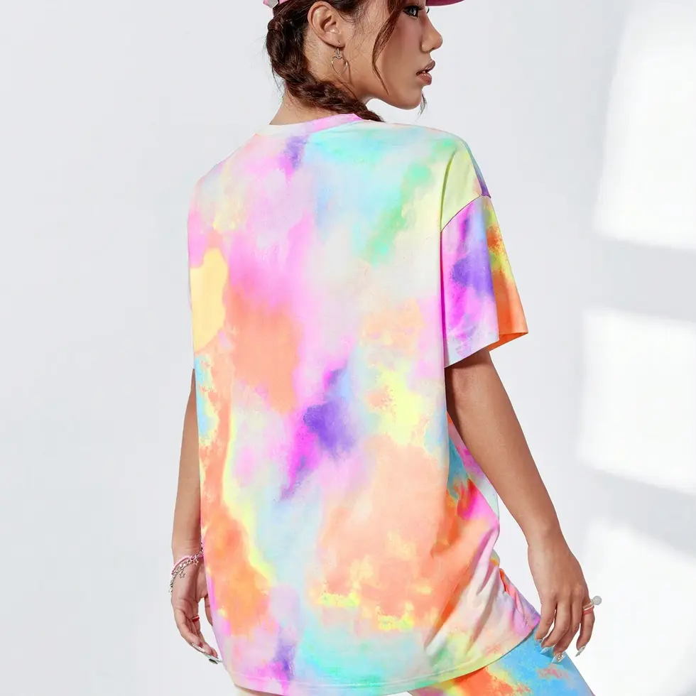 : Embrace the vibrant energy of Pride Month in style with our Tie-Dye Short Sleeve T-Shirt And Shorts set! The round neck and drop shoulder sleeves give this casual outfit a relaxed and comfortable fit, perfect for a night out or festival celebration. The multicolor tie-dye pattern adds a fun and playful twist, while the zipper details on the shorts add a trendy touch. Made with knitted fabric, the unlined tee and biker shorts are ideal for warm weather, making it a must-have for your summer wardrobe. Whether you're attending a Pride event or simply want to add some color to your outfit, this set is the perfect choice for a fun and fashionable look.
