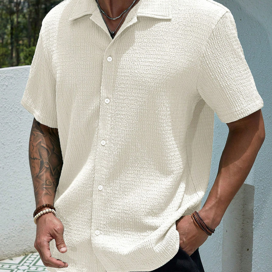 White Button-Up Short Sleeve Casual Shirt